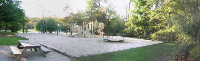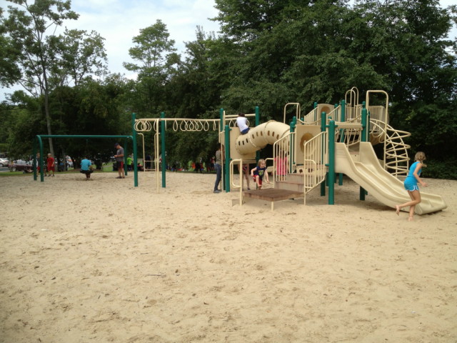 The playground is 630 square feet of absolute joy to the younger crowd. Situated upon a soft sand base there are three slides on the main play equipment structure. Additionally, there is a tunnel tire type swing, a rocking plank bridge and two types of monkey bars. Adjacent to the main structure there is an old fashioned merry-go-round.